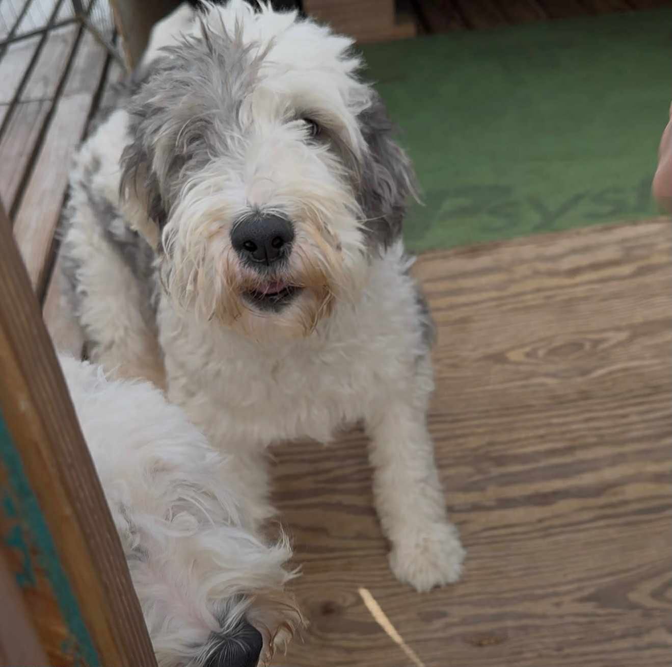 Bette and Dot were rescued in Arlington, TX from a backyard breeder and hoarding situation of OES and Sheepadoodle young dogs. Both Bette and Dot are 1-year-old OES female pups. They are unaltered and are being cared for by TXOESR fosters in the Dallas / Fort Worth area. They are becoming accustomed to feeling safe around people. They are getting current on all vaccines, microchipped and scheduled for spay in February 2026. Once more infor is gathered on behaviours and socialization occurs, TXOESR will be sharing on this site.