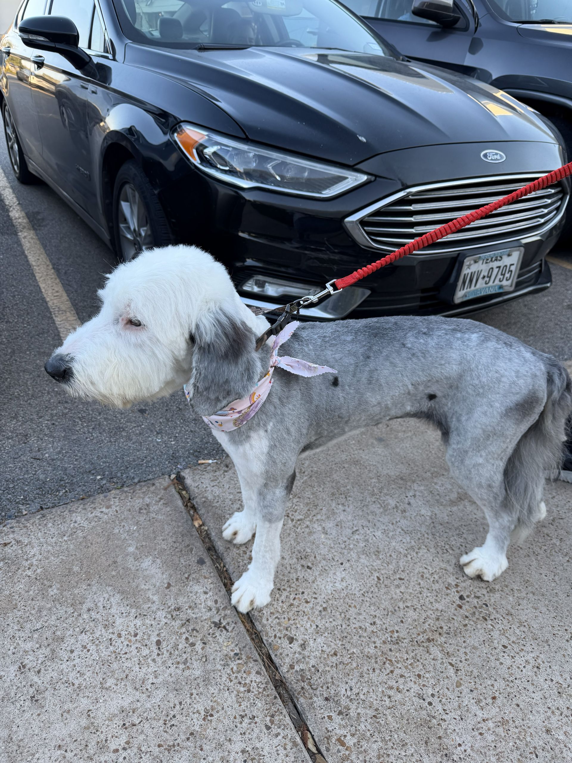 Ozzy is a 6-month OES male just fully of puppy energy. He is being socialized by his TXOESR foster family around kids and other dogs.